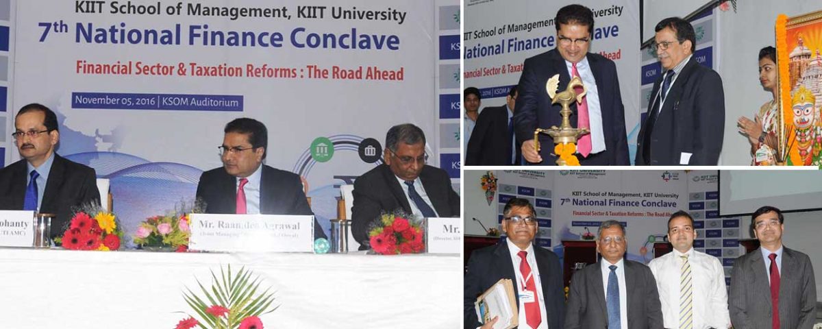 November 6, 2016KIIT School of Management (KSOM) organised its 7th National Finance Conclave on 05th November, 2016. The theme of this years’ conclave was “Financial Sector & Taxation Reforms – The Road Ahead”. The conclave was inaugurated by Mr. Raamdeo Agrawal, Joint Managing Director, Motilal Oswal; Mr. Debasish Mohanty, President & Country Head, UTI Mutual Fund, and Mr. Anand Sinha, Director IDFC, Ex Deputy Governor RBI, IDFC Bank in the presence of Prof. Anil Bajpai, Director, KSOM and Prof. S.N Mishra, Dean, KSOM.