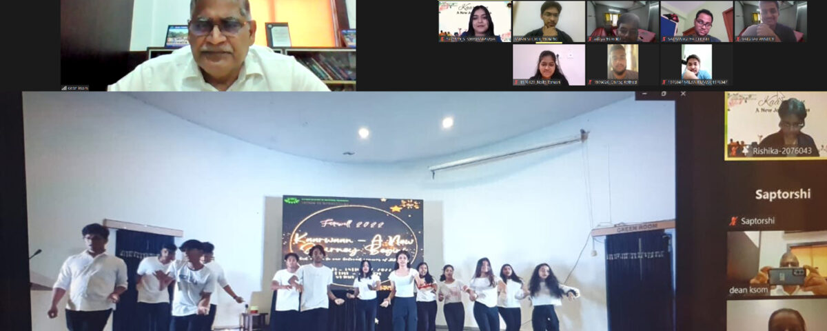 June 6, 2022Sanskriti- the cultural club of KSOM conducted the official farewell event “Kaarwaan” for BBA 2019-22 batch on the 14th of May 2022 at 2:30 pm on online mode. Respected Dean Dr. SN Mishra, BBA chairperson Dr. Isa Mishra, BBA coordinators Dr. Saptorshi Das, Prof. Mohar Banerjee Biswas and Prof. Ritika Rani Sharma, and all the faculty of KSOM and students from BBA 1st year, 2nd year and 3rd year joined the meeting. The meeting began by welcoming all. Respected Dean sir addressed the gathering and motivated and blessed all the seniors for their new journey after college, which was then followed by Dr. Isa Mishra. Then a video, prepared by Team Sanskriti was played. Then, dance performances by BBA 1st year and 2nd-year students and a song by Dr. Isa Mishra were performed. Also, video messages prepared by the faculties where they spoke about the students and their journey with them were presented. Some students also shared their feelings and memories they had during their stay at KSOM. After all this, the meeting came to an end with a vote of thanks note by Dr. Isa Mishra.