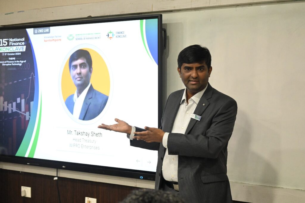 The inaugural session was followed by LSIP (Large Scale Interactive Processes) headed by top Finance professionals. The themes under discussion were Digital Currencies, Forensic Accounting, Algorithmic Trading and Robo-Advisors, Financial Inclusion in the Digital Age, Risk Analysis in Fintech, Green Finance/Sustainable Investing, Predictive Analytics and AI-Powered Insights in Financial Decision Making, Cybersecurity and Data Privacy in the Financial Industry, Leveraging technology in fundamental equity investing – enhancing analysis and decision-making and Financial Inclusion and Banking Services. The interactions were carried out by Industry leaders: Mr. Takshay Sheth, Head Treasury, Wipro Enterprises; Mr. Suvendu Mishra, Group Partner, Motilal Oswal; Mr.Sandeep Yadav, CIO, DSP AMC; Mr. Shriram Ramanathan, CIO, HSBC MF; Mr. Manish Kumar Das, Sr. VP HSBC; Mr. Devang Shah, CIO, Axis MF; Mr. Vikas Garg, CIO, Invesco MF; Mr. Vivek Rajagopalan, CFO, CMA CGM Global Business Services; Mr. Kunal Dikshit, CIO, Federal Fin Services; and Mr. Mayur Patel, Sr. EVP, 360 ONE Asset.