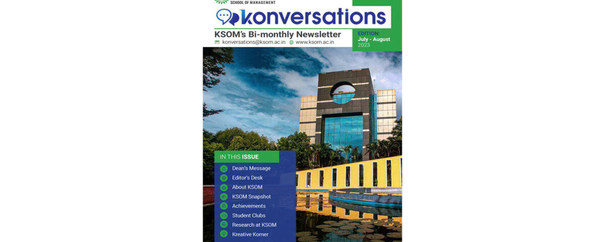 The 14th edition of the HR Konclave and the 4th edition of the Business Analytics Konclave were held during this time. Both events were planned on a grand scale and were preceded by student competitions with participants from premier institutions all over the country. Konclaves provided the much-needed gateway between the university and the academia where practitioner experts from varied organizations interacted with us through lively panel discussions and immersive student workshops. The month of August also witnessed the grandest event of all in the University i.e., the annual convocation. In our quest to build a legacy of students contributing substantially to the organizations that they serve post the completion of their academic journey, a robust alumni connect is considered imperative. Kongregate, the alumni club of KSOM hosted a meet and greet with the alumni on the 18th of August 2023. Selected alumni were called back to the campus to interact with students during the Konfluence and the Konclaves. Significant faculty and student achievements are a highlight during this period. KSOM has had holistic approach to research. Research workshop, research discussions and publications by faculty in our inhouse journal and other journals of repute helped promote a research culture in the school. As we persevere in this academic year, we shall strive to provide every opportunity to our students to help them secure positions within organizations to contribute meaningfully. Furthermore, we will also attempt to forge partnerships with our academic and corporate counterparts to impart relevant education for all our stakeholders.