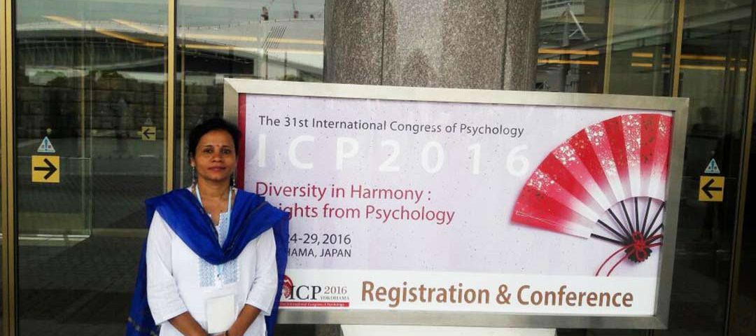 Prof. Sasmita Mishra presented a paper titled “Disaster Preparedness: Antecedents and Strategies” as invited symposium speaker in International Congress of Psychology held at Yokahama, Japan from 24-29 July 2016. This congress is held in every 4 years and is a prestigious conference in the field of Psychology. In the same conference presented another paper entitled “Political skill as a mediator of emotional labour and job related effective wellbeing”.