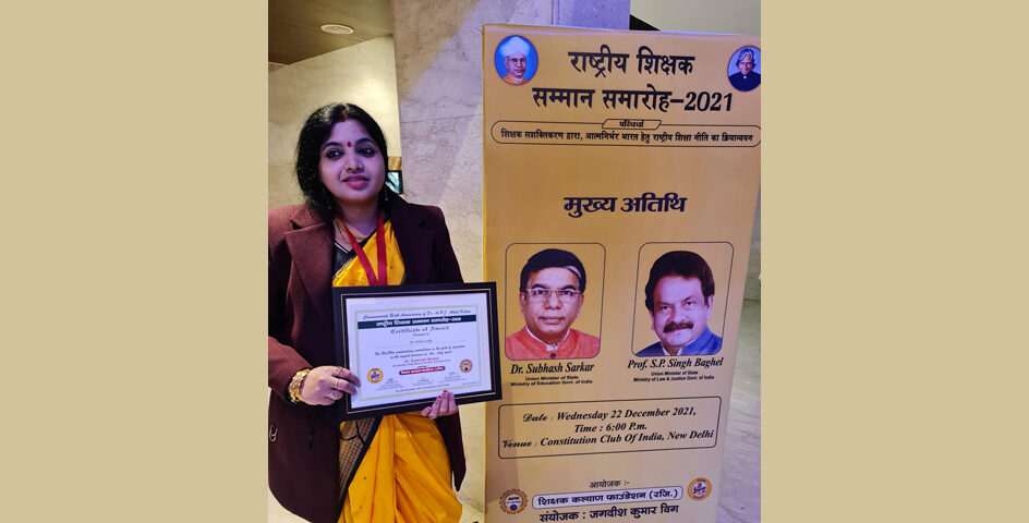 Dr. Shikta Singh, Professor at KSOM, KIIT DU was felicitated with the National Education Award APJ Abdul Kalam Teacher’s Excellence Award, AICTE, GOI in the August presence of Honourable Education and Law and Justice Minister Shri Subhash Sarkar and Shri SP Singh Baghel respectively in The Constitution Club of India, New Delhi.