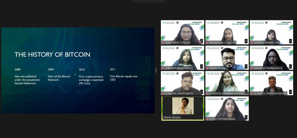 The session included the most awaiting part – the crypto currencies, reducing involvement of centralized exchanges as well as bitcoin Regulation, trading where he spoke about the crypto trading and the prices. The webinar ended with a very interactive Q&A session. Sparsha Ranjan, MBA 1 student, moderated the webinar.