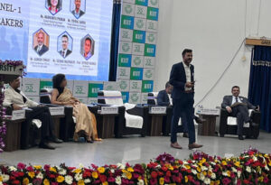 Dr. Saroj Mahapatra, Director, KSOM & Konclave Chair gave the Welcome Address. He extended his welcome and greetings on behalf of Dr. Achutya Samanta, Hon’ble Founder, KIIT & KISS, to everyone present in the event. He introduced the corporate dignitaries and set the context for the day. Dr. Mahapatra addressed the students regarding the tumultuous time ahead for businesses and how ‘Quality, Time and doing the Right Things’ with the help of technology can help us overcome the challenges ahead.