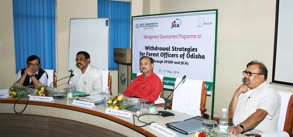 KSOM recently concluded a three day training programme on ‘Withdrawal Strategies’ for the Forest Dept of Odisha through OFSDP. The programme discussed various protocols for effective withdrawal strategies along the forest fringe villages of Odisha that included case studies as well. In addition to KSOM faculty members – Prof. Subrat Sarangi, Prof. Arvind Tripathy and Prof. Sumita Mishra, other esteemed external trainers from Pradan Odisha and the Planning and Coordination Dept, Govt. of Odisha were also present and conducted the MDP. The programme had representation from the 14 OFSDP project forests of Odisha and included various DFO’s ACF and IFS officers.